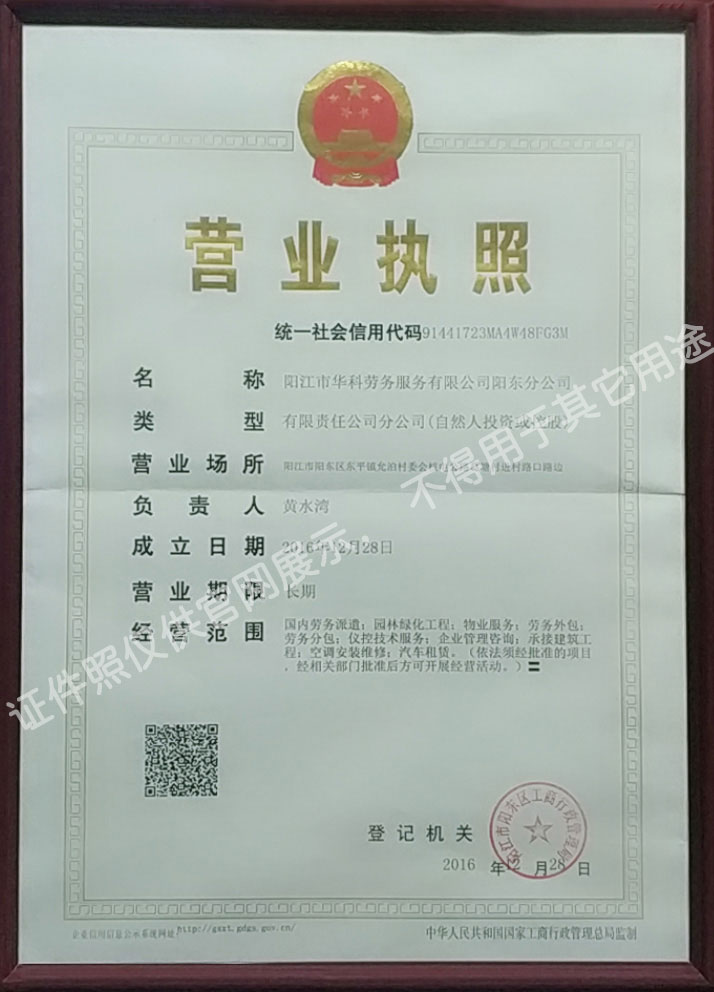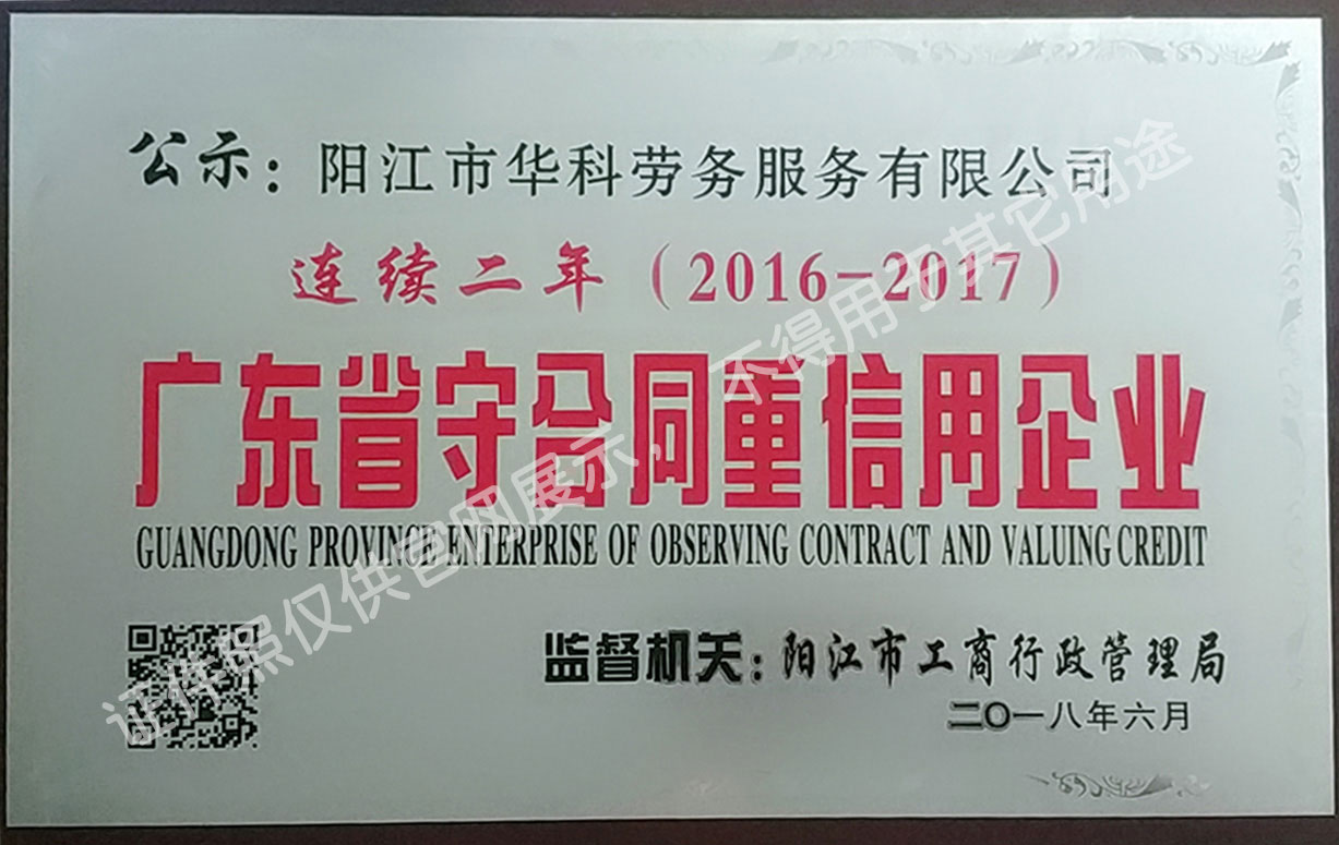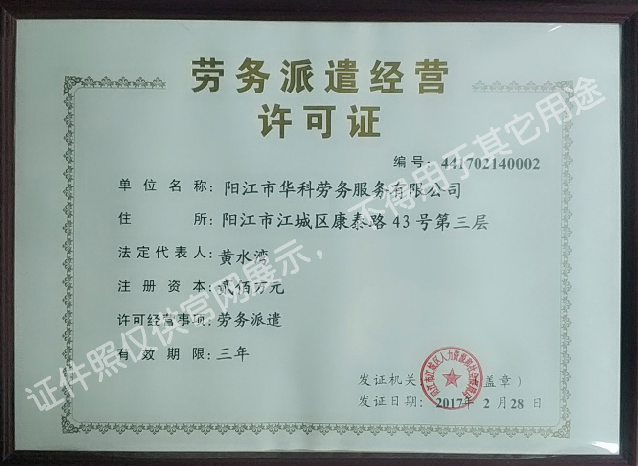 華科勞務服務有限公司是專業(yè)從事人事代理、勞務租賃、人力派遣及管理的綜合性服務機構,是首批獲得廣東省人力資源廳、陽江市勞動和社會保障局頒發(fā)人力資源許可證的合法單位。公司秉承“誠信務實、專業(yè)熱情、滿意第一、服務社群”的經營理念,在勞務派遣業(yè)務的基礎上,更致力于合同制工人(臨時工、實習生、假期工)方向發(fā)展,為用工企業(yè)及時輸送合格的各類人才,合理調配人力資源的有序流動,幫助求職者尋求更加滿意的就業(yè)渠道和崗位,切實維護求職者的合法權益。